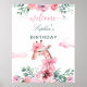 Póster Giraffe Watercolor Floral Pink Ribbon Girl