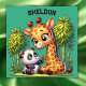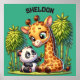 El panda más lindo está compartiendo su bambú con una jirafa de verde y marrón. Póster.