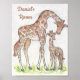 Giraffe y su ternera - Impresión artística de una acuarela original de Annie Mason diseña el nombre de la niña