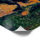 La interpretación contemporánea creada por A.I. de un grupo de jirafas se encuentra en silueta contra una vibrante puesta de sol que arroja un cálido resplandor a través del cielo y refleja en el agua de abajo. Altos árboles llegan hacia arriba en el lado izquierdo de la pintura, reflejando el cuello alargado de las jirafas paradas al borde del agua.