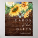 Este cartel de tarjetas y regalos de madera con girasoles country audaces es perfecto para su boda rústica de verano boho simple y clásica en el jardín trasero del granero. El diseño presenta un ramo de girasoles vintage en acuarela amarillos dorados y naranjas rústicos, follaje de eucalipto verde salvia moderno y elegante, y una rosa marfil blanca. El diseño es ideal para una boda casual al aire libre con follaje otoñal minimalista. Por favor, no dude en hacernos saber si tiene alguna pregunta sobre el diseño del producto; ¡salud!