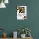 Esta señal de funeral cuenta con girasoles, rosas púrpuras y flores, follaje y elementos geométricos dorados falsos. Personalízalo con tu foto y texto