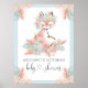 Fox baby shower welcome sign with sweet watercolor fox with flowers and feather crown on a beautiful floral and feather background. This fox baby shower welcome sign is easily customized with your text. You can also change the background color.