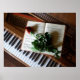 There’s a freshly cut red rose on this old hymn book. The music is open at “Where is my Wandering Boy?†and also “Give Me thy Heart.†Underneath you see the tuning pins, felts and keyboard of the grand piano.