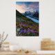 Esta foto muestra flores silvestres sobre rocas con el glaciar Monte Rosa en segundo plano, Zermatt, cantón de Valais, Suiza.
