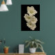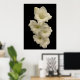 Este poster te deslumbrará con gladiolas blancas y preciosas. Los pétalos deslumbrados destacan sobre un fondo negro.