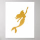Póster de Princesa Sirenita Glam Chic Hoja de Oro Falso