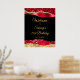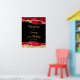 Este elegante y glamoroso cartel de bienvenida para la fiesta de cumpleaños muestra lágrimas de purpurina rojo y dorado sobre un fondo negro. El texto combina el guión manuscrito y las fuentes sans serif modernas para un aspecto elegante y sofisticado.