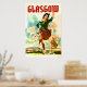 Poster de Viajes Vintage, Glasgow Scotland. Con una escena de disfraces tradicionales.
