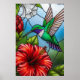 Póster Glass Patchwork Hummingbird Garden Floral Mosaic