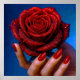 Dieses faszinierende digitale Kunstwerk zeigt eine Nahaufnahme einer glitzernden roten Rose, die sanft von einer Frauenhand mit passend rot lackierten Fingernägeln gehalten wird. Die mit Glitzer verzierten Blütenblätter verleihen der Rose eine magische Ausstrahlung und ein luxuriöses, glänzendes Finish. Die harmonische Farbpalette aus tiefem Rot und eisig blauem Schimmer vermittelt Eleganz, Geheimnis und moderne Weiblichkeit.