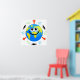 Carácter personalizado del mundo globo rodeado de símbolos cristianos - cruz, sagrada biblia, paloma y símbolo de pescado.