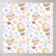 Un poster con un patrón tierno y caprichoso. Globos de aire caliente y bonitas nubes con caras entre estrellas y corazones y globos. Los suaves colores pastel componen este adorable diseño.