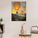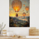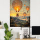 Disfrute de la belleza del arte impresionista con este sereno paisaje de amanecer con globos de aire caliente flotando suavemente sobre un tranquilo campo. Esta bonita impresión de arte captura los tonos dorados y el tranquilo movimiento de la naturaleza, perfecto para una elegante decoración en las paredes.