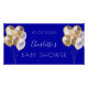 Un fondo azul real. Decorado con globos dorados. Personaliza y añade un nombre, fecha. Letras blancas. El nombre está escrito con una tipografía moderna de letra a mano.