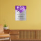 Un poster de bienvenida para una fiesta de cumpleaños glamurosa y femenina de 21 años (o de cualquier edad). Un fondo falso plateado decorado con goteos en purpurina de color morado, pinturas que gotean y globos. Personalice y agregue un nombre y una edad. Atrás: sin diseño