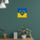 Poster with the flag of Ukraine, heart in the Ukrainian colors, and text saying "Glory to Ukraine" in Ukrainian