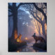 Póster Glowing Twilight Forest with Wooden Animals