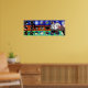 Projet conceptuel utilisant les outils créatifs de Zazzle. Ce projet part de l'idée de proposer aux amateurs d'Art un travail participante. Pour cela, je offer un cadre (et même plusieurs cadres superposés et légèrement transparents) pour créer une integration only et original. Ces cadres sont au nombre de 24 pour les 24 heures de la journée humaine. Ces cadres sont de formes géométriques: cercle, carré et octogone. Les cercles se déclinent en dégradé dans les tons de bleu, les carrés dans les tons orangés et les octogones en vert, en bleu et émeraude. Le choix des couleurs et des formes s'accort 3 type de "time" constituant un jour: soit 8heures de sommeil, 8 heures de travail et 8 heures de détente, les repas sont comptés dans ce time détente A cela s'ajoute 7 "Objets" (à la fois des objets que j'ai posséou qui taient chez moi, que j'ai pris en photo et quelquefois des morceaux de mes propres travaux: ici il s'agit d'un série de livres miniaturas. L'image de la poupée est une oeuvre en céramique qu'une amie artiste australienne m'a donnée. Chaque élément (cadre coloré et objets) sont modificen taille, ils peuvent être changés de place. Ainsi sobre el modificador peut l'ordre des superpositions de couleur. Avec 31 calques les posibilités deviennent énormes. Ce premier panneau est un panneau test, qui me permettra d'affiner et de modifier mes images. L'idée de départ étant plus complexe et faisant intervenir les fuseaux horaires du lieu des amateurs d'Art potenciels, je n'ai conservé que les cadres. — Poster 32"x12" - Disponible en impresión de lienzo. No olvides toda la serie con varias imágenes y varios marcos de colores gradientes.
