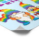 Este lindo poster de pared tiene tres gnomos vestidos con ropa de arco iris y con banderas de arco iris y un corazón de arco iris. La tipografía dice "ORGULLO", en una fuente ondulada usando todos los colores del arcoiris.