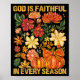 Póster God Is Faithful In Every Season Floral Fall Christ