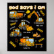 Póster God Says I Am Christian Bible Verses Boys Construc