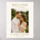 Welcome your guests with sophistication and style using this elegant modern photo wedding welcome poster. Designed with a clean layout, refined typography, and your favorite engagement or wedding photo, this sign perfectly balances timeless elegance and modern design. Display it on an easel at your ceremony or reception entrance to create a warm first impression. Easily customize with your names, wedding date, and location — a print-ready piece that complements any chic, contemporary wedding theme.