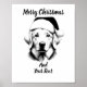 Festive Golden Retriever Christmas poster featuring a cute dog in a Santa hat. Minimalist black and white style. Personalize with your text or pet's name. Perfect holiday wall art gift for Goldie lovers. Available as a high-quality print or Instant Download for last-minute gifts.