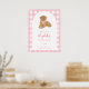 Add a heartwarming touch to your little one’s celebration with this pink gingham golden retriever first birthday poster! Designed with a sweet golden retriever puppy wearing a pink gingham bow and a soft checkered background, this personalized welcome poster is perfect for displaying at your entrance, dessert table, or photo area.