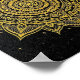This is an original, highly detailed piece of art featuring a symmetrical, intricate Mandala design rendered in striking gold (or yellow-gold) on a deep black background. The design evokes the appearance of a blossoming flower or a starburst, radiating outward with layered patterns, fine lines, and traditional motifs. The black background is textured, suggesting a cosmic or starry night sky, which makes the luminous gold design stand out dramatically. This artwork is perfect for adding a touch of spiritual elegance, meditative focus, or Bohemian luxury to any space.
