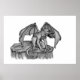Golem Gargoyle - Dibujo a lápiz de arte fantasía por Krisi ArtKSZP >>> Más productos en la categoría de tienda >> Angel Devil Golem Gargoyle Vampire >>> Golem auf Fels