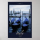Las góndolas de Venecia, Italia, atadas a los espigones de la plaza de San Marcos que dan a la bahía veneciana.