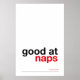 Cozy and minimalist wall art for nap lovers. “GOOD AT NAPS” is a modern typography poster perfect for bedrooms, home offices, and relaxed living spaces. Available in multiple color backgrounds.
