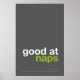 Cozy and minimalist wall art for nap lovers. “GOOD AT NAPS” is a modern typography poster perfect for bedrooms, home offices, and relaxed living spaces. Available in multiple color backgrounds.