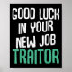 Póster Good Luck In Your New Job Traitor Funny Sarcastic