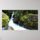 Antes de la llegada al lago Avalanche en el Parque Nacional Glaciar de Montana, se cruza el arroyo Avalanche. Aquí hay una escena de la naturaleza que muestra el desfiladero de Avalanche del Camino de los Cedros. El musgo verde profundo y la roca gris desprenden el agua blanca y brillante que fluye rápidamente. Esta foto también aparece en el papel panorámico "Avalanche Gorge I" de la sección de Parques Nacionales de MLeWallpapers.com. Visita nuestra tienda para ver más fotos del paisaje del Parque Nacional Glacier y otros famosos Parques Nacionales de Estados Unidos.