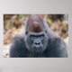 Lope el gorila es capturado en un potente primer plano de 2025, mirando directamente a la cámara. Su intensa mirada y sus fuertes características llenan el marco, creando un momento de conexión natural entre el sujeto y el espectador.