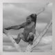 Un gorila, encaramado en un árbol, exuberante tranquilidad con un brazo despacio detrás de la cabeza. Los tonos monocromos realzan el ambiente sereno, enmarcado por nubes distantes.