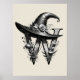 Póster Gorra de bruja negro Letra W Personalizado inicial