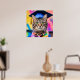 Vibrante poster cuadrado con obras de arte extravagantes. Esta encantadora taberna, con una gorra azul y una bufanda de tintes de corbata detrás de un fondo psicodélico. Alma Wad usó Canva AI para crear esta obra maestra. Ideal para cualquiera que ame gatos lindos, vibraciones psicodélicas y divertidos temas de graduación.