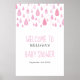 Las pequeñas gotas de lluvia rosadas se caen hacia tus detalles personalizados en este cartel de bienvenida de bonito de bebé, rociar o ducha de pareja. Diseñado por Thisisnotme©