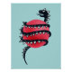 poster de dragones de Guay con un ilustracion digital de un monstruo - quimera entre un dragón y una serpiente con picos por todo su cuerpo enroscados alrededor de una bola roja.
