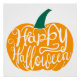 Tipografía estilizada Feliz Halloween tallado en el dibujo de calabaza en estilo plano