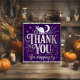 Un brillante gato plateado sentado encima de esto Gracias por arrojar por glam Halloween poster purpurina morado y plateado