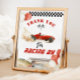 Gracias por competir en un coche de carreras rojas Poster de cumpleaños.