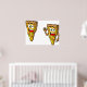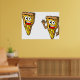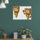 Un par de rebanadas de pizza con cara sobre ellas. Este diseño parece realmente efectivo en este Poster
