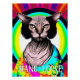 Un gato fresco de esfínx está mirando groovía con su ropa psicodélica.