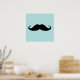 Póster Gracioso Mustache Negro Y Patrón De Chevron Azul