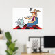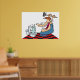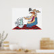 Un fontanero gracioso que se ve con un émbolo para desbloquear un inodoro. Este diseño parece realmente efectivo en este Poster
