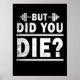 Pero, ¿moriste? Este divertido poster motivacional te anima a hacerlo mejor que tu mejor. Si no tienes ganas de morir por tu entrenamiento, ¡no trabajaste lo suficiente! Un gran regalo para cualquier ocasión, especialmente para aquellos que se dedican al gimnasio.